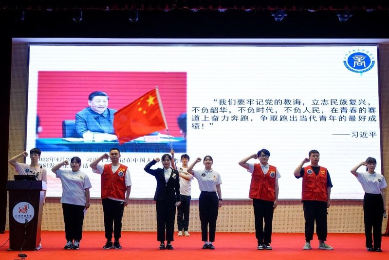 教工团支部团队代表通过讲述关爱留守儿童、与院士面对面的实践活动,勉励教职工发扬“重视科研、崇尚学术”的工作精神。