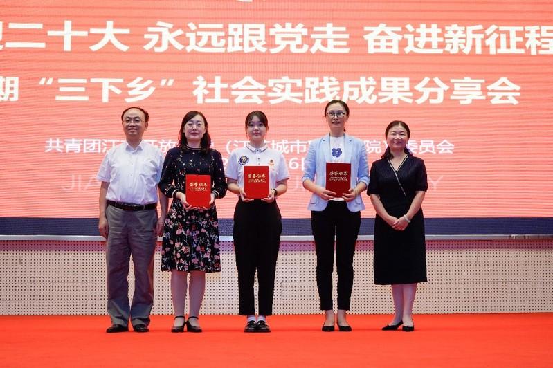 为深入学习习近平总书记在庆祝中国共产主义青年团成立100周年大会上的重要讲话精神,引导和帮助广大青年学生上好与现实相结合的“大思政课”,在社会课堂中“受教育、长才干、作贡献”,9月16日下午,我校在应天校区体艺馆406举办2022年暑期“三下乡”社会实践成果分享会,来自各学院、教工团支部的8支暑期重点社会实践团向师生们展示了他们优秀的实践成果。我校党委副书记、副校长金丽霞,党委组织部部长韩承辉、党委宣传部部长、马克思主义学院院长季海菊、学生工作部部长刘涛、团委书记包慧君、教务处副处长沈宏,各学院分管学生工作的院领导、团委委员以及线下和线上的学生一同观摩了此次分享会。