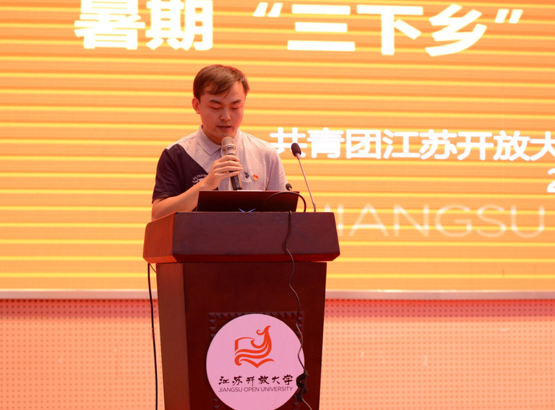 我校团委兼职副书记陈涛涛作暑期社会实践开展情况报告。他表示,今年各学院围绕学校中心工作,服务学校发展大局,助力“三三三”工程实施,分别联系市县开放大学共同开展丰富的共建活动,把社会实践写在了江苏大地上。