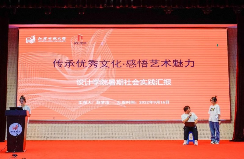 设计学院团队代表展示了他们走进南京明园社区担任文明城市创建志愿者,探寻非遗文化与现代文创作品设计的有效融合,在实践中感悟、学习、成长的心路历程。