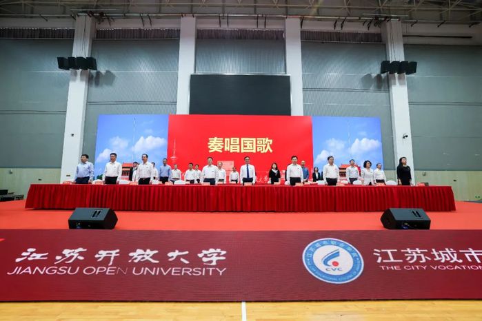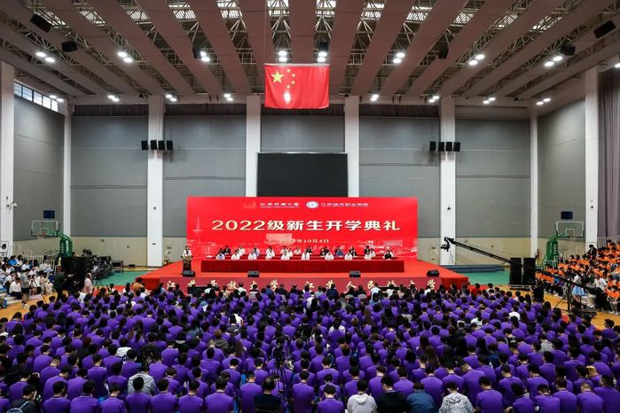 金秋十月,硕果盈枝,江苏开放大学(江苏城市职业学院)2022级新生开学典礼于10月4日上午9时在应天校区体艺馆举行。来自全省73家市县开放大学的3万多名开放学员和来自祖国各地的2400多名高职新生云端观礼共聚,开启逐梦之旅。校党委书记王建明、校长崔新有等全体校领导出席典礼,各市县开放大学校领导、各部门党政负责人、教师代表、新生班班主任、学务导师和全体辅导员参加典礼。典礼由校党委副书记、副校长金丽霞主持。