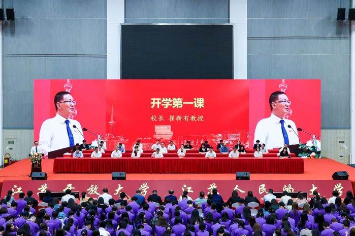 新起点、新征程、新高度、新挑战,愿所有新江苏开大人与学校发展同向同行、与民族复兴同频共振,用成长和收获体悟江苏开大精神和力量,谱写新时代最美的青春华章!