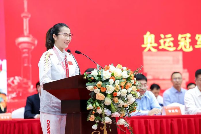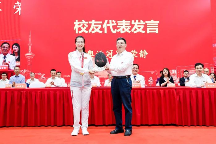 校友代表、国家击剑队队员、三届奥运冠军、北京冬残奥会护旗手,我校2014级社会工作专业校友荣静发言。她分享了在比赛训练的同时,不忘在终身学习的赛场上奋力奔跑的宝贵经验。