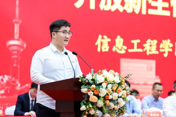 教授代表、公共管理学院院长纪河教授用青春奋斗与同学们共勉,希望大家心怀阳光,砥砺奋进,开启在江苏开大的新征程。