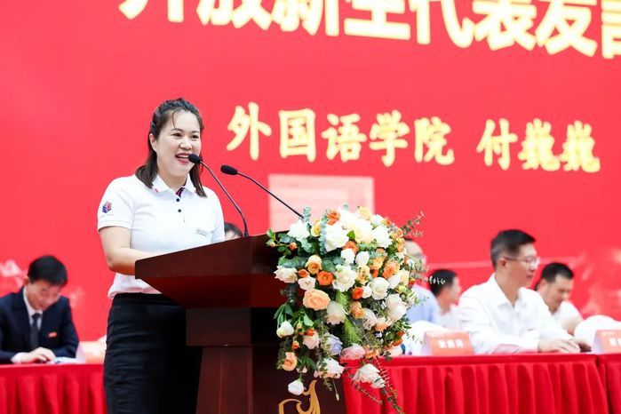 新生代表先后发言。毕业于北京理工大学的硕士研究生付巍巍是2022级汉语国际教育本科专业新生,出于对汉语的热爱、对工作的追求,她在对的时候遇到了对的江苏开放大学,她感谢学校助力自己写好人生的这本书,勉励全体同学步履不停、奋斗不止,在平凡中育非凡,书写完美人生。
