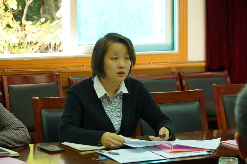 商学院党总支副书记丁晓华做汇报交流