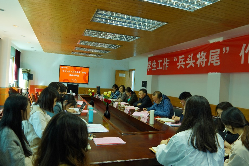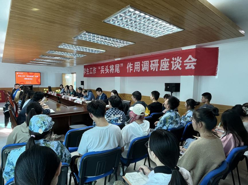 金丽霞最后总结,此次调研座谈会为大家提供了交流的平台和相互学习的机会,会议的精神将全面指导以后工作的开展,充分发挥“兵头将尾”学生干部的作用,希望同学们不虚度光阴,在大学校园里有收获,有成长。