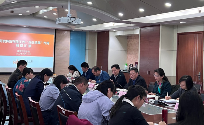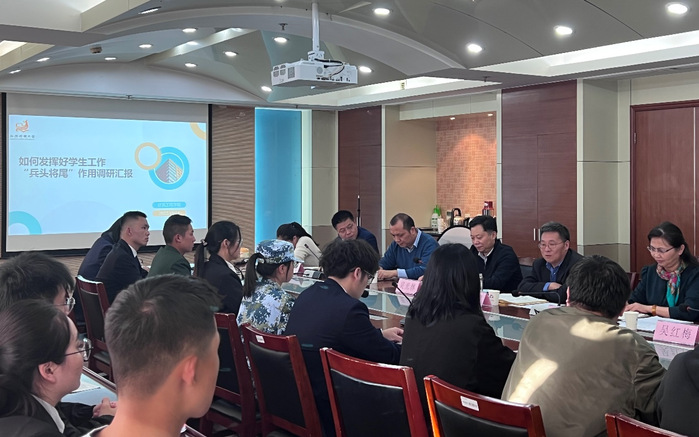 随后,学院党总支部副书记徐亚从对此项工作的认识,学院高职学生宿舍长、团小组长和课代表等学生干部建设现状、作用发挥情况、目前存在的问题及下一步的工作思路与措施五个方面向与会领导汇报了建筑工程学院“兵头将尾”队伍的建设和工作开展情况。学工办主任、团总支书记及其他辅导员分别就宿舍长、团小组长、课代表的工作情况及学院学生干部建设、管理经验和存在的问题作补充发言。