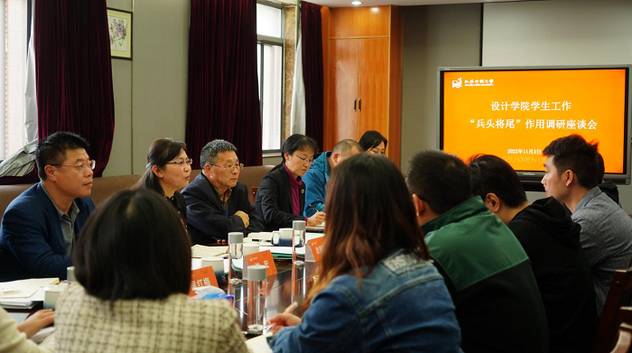 11月3日,学校党委书记王建明、校党委副书记、副校长金丽霞、党委常委、副校长罗逾兰在东校区北综合楼二楼会议室就设计学院如何发挥学生工作“兵头将尾”作用进行专项调研。调研座谈会分辅导员、班主任专场和学生专场两个部分,会议由金丽霞主持。