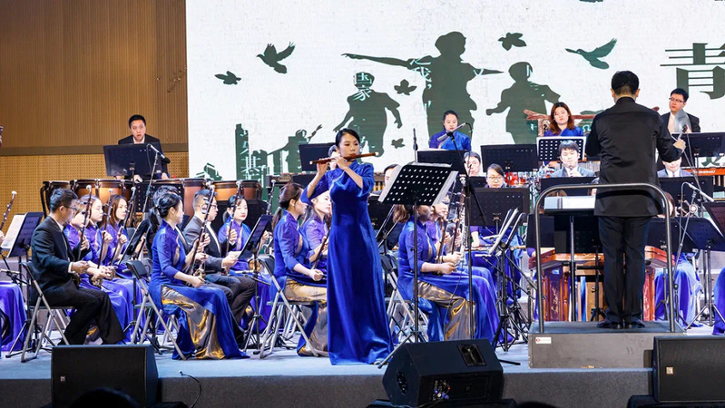 《五四之光》是新民主主义革命的号角,《觉醒》是爱国青年在民族危亡时刻的呼声。《青春似火》以悲壮急迫的音乐场面作为开端,青年竹笛演奏家孟诗文和乐队一起用小快板,歌颂了青年们艰苦奋斗投身祖国建设的精神风貌。《从头越》运用了宋词的结构关系,上阙是追忆奋斗历程的艰难险阻的“所思”,下阕是抒发从头越的豪情壮志的“所感”。唢呐协奏曲《青春随想》展现了当代青年的自信豪迈,著名唢呐演奏家隋景宏的一段独奏炫技点燃了在场观众的激情。青年古筝演奏家徐畅带来的《百年芳华》,用细腻的古筝语汇,谱写了百年来永恒与巨变,沧桑与繁华,古老与青春。《薪火》运用了复调织体,象征了薪火相传,绵延不息的精神。最后,《新纪元》将整场音乐会推向了高潮,新时代、新面貌、新精神都被融汇在这曲民族交响之中。