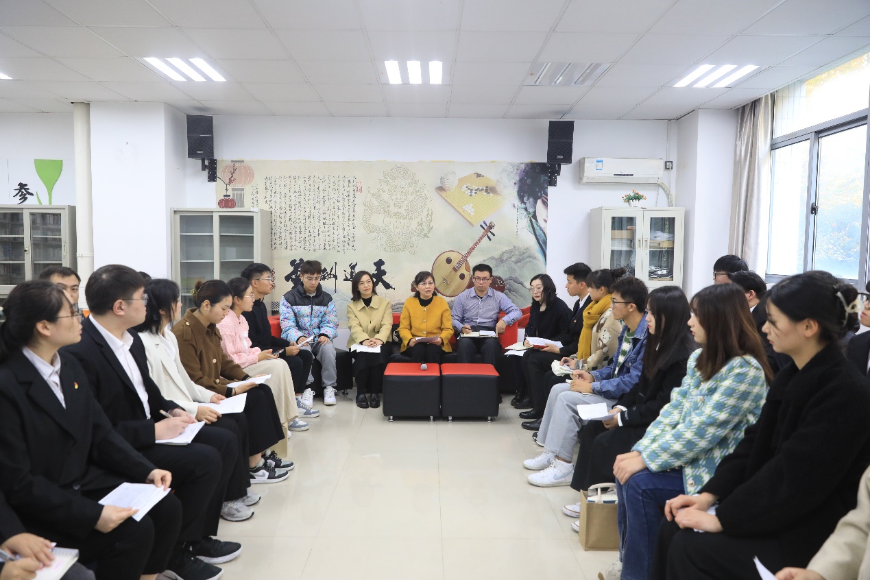 为深入学习宣传贯彻党的二十大精神,切实把全校广大青年学生的思想和行动统一到党的二十大精神上来, 11月24日上午,我校在应天校区图书馆一楼召开“学习党的二十大 永远跟党走 奋进新征程”团学青年学习交流座谈会,校党委副书记、副校长金丽霞出席并讲话,学生工作部部长刘涛、部分学院党总支部副书记、团总支部负责人、教工团支部书记以及团学骨干代表参加,座谈会由校团委书记包慧君主持。