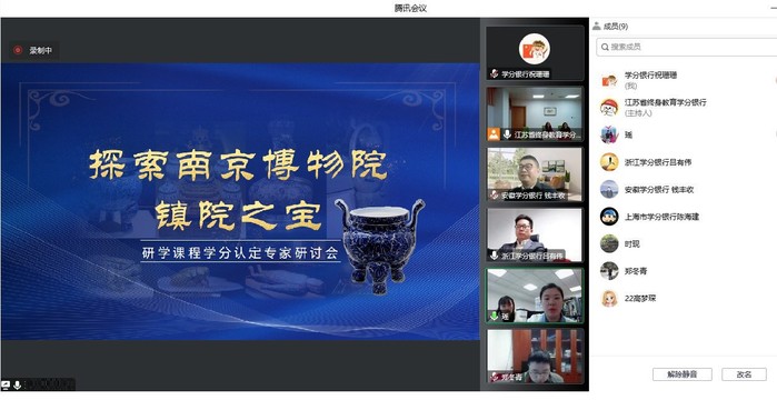 学分银行管理中心依据非学历教育成果认证指南,面向研学课程围绕目标定位、考核评价、学习内容、质量控制、支持服务、师资队伍六个维度收集材料并逐一进行初步审核,沟通专家意见,统一认证评价尺度。在专家工作组完成材料审核的基础上,学分银行管理中心于11月30日上午通过腾讯会议组织线上汇报答辩,在听取申请方汇报后,专家们客观公正地对课程进行评价,在充分肯定课程优势的基础上对进一步完善和优化给出了建设性建议。经集中评议,“探索南京博物院镇院之宝”研学课程顺利通过认证,学习者通过该课程学习取得的成果,可认定为24学时,根据理论+实践课程的学分计算标准认定为1学分,可存储在江苏省终身教育学分银行网络服务平台并可在线打印成果认证报告。