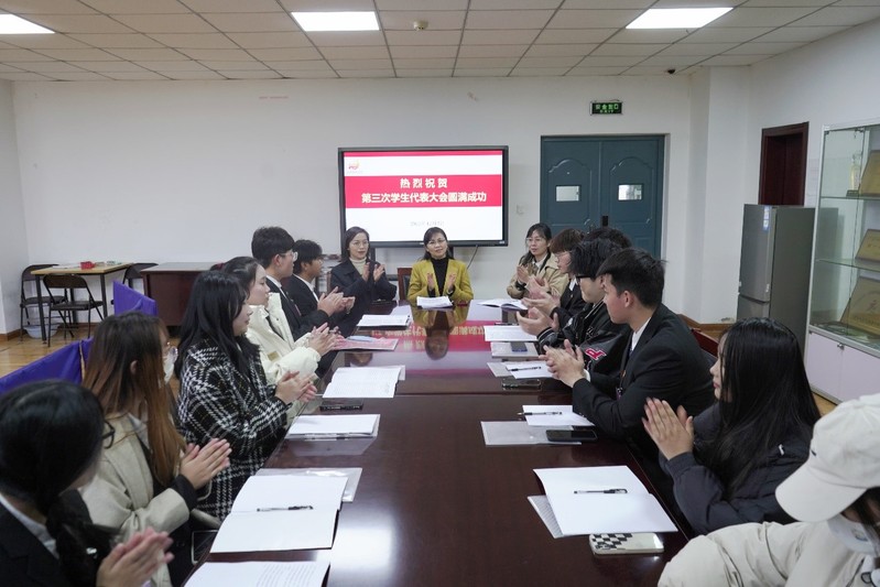 12月2日,我校第三次学生代表大会顺利召开,会上选举产生了第三届学生委员会委员与新一届校学生会主席团成员。为进一步加强党对学生会组织的领导,贯彻落实共青团中央、全国学联《关于推动高校学生(研究生会)深化改革的若干意见》文件精神, 12月2日下午,校党委副书记、副校长金丽霞代表学校党委与第三届学生会委员及新一届校学生会主席团成员于应天校区体艺馆一楼会议室进行座谈交流,指导学生会组织进一步开展好工作。团委书记包慧君、团委副书记尹星参加会议。