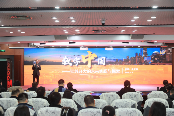 这是一堂前沿思辨、振奋精神的开年“第一课”。会上,崔新有以《数字中国——江苏开大的未来实践与探索》为题,通过“教育数字化”“人口老龄化”“产业智能化”三个关键词解读了目前学校面临的形势与背景。