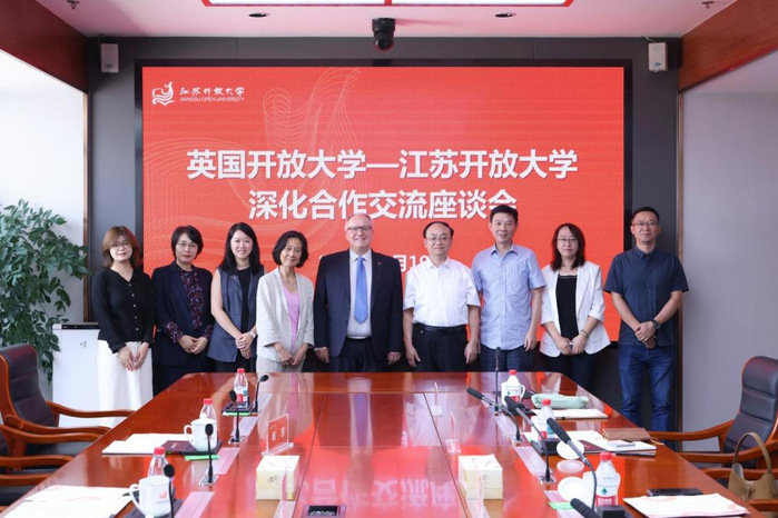 韩承辉对代表团的到访表示欢迎,并详细介绍了我校在开放教育、终身学习体系建设等方面取得的最新成果。他指出,江苏开放大学与英国开放大学在办学理念、教学模式、资源建设上存在很多相似之处,期待双方在师资培训、课程共建、联合科研等方面开展深度合作,携手谱写开放教育国际合作新篇章。