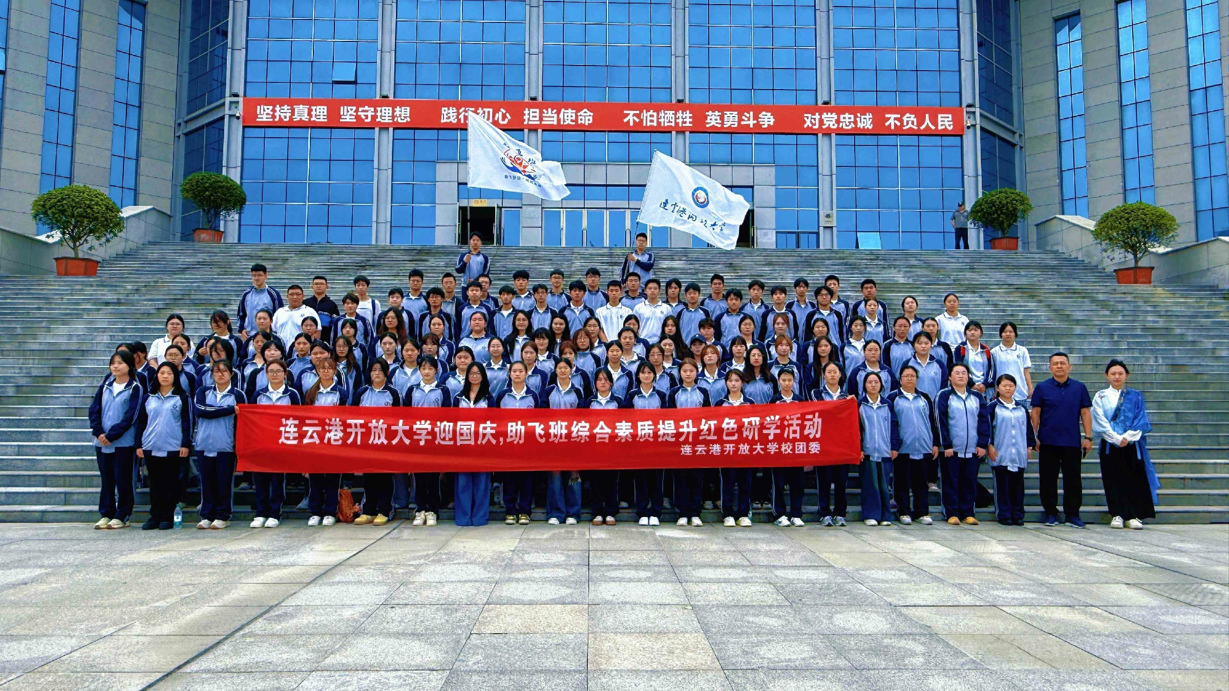 雨丝斜织,挡不住青春的脚步;路途漫漫,抵不过信仰的力量。在中华人民共和国成立76周年即将到来的庄严时刻,连云港开放大学的同学们怀揣赤诚,冒雨踏上徒步征程,向着连云港市革命纪念馆坚定前行。