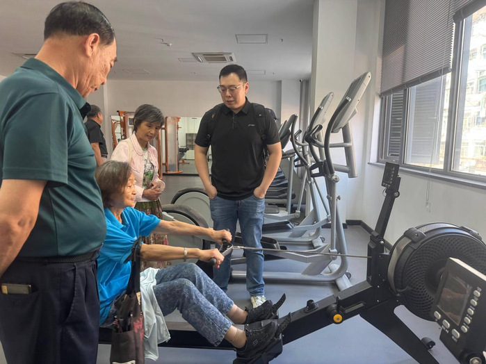 讲座结束后,两位老师还参观了社区健身房。李佳颐博士亲自为老人们演示了各类健身器材的正确使用方法,并耐心讲解安全锻炼的注意事项,受到老人们的广泛欢迎。