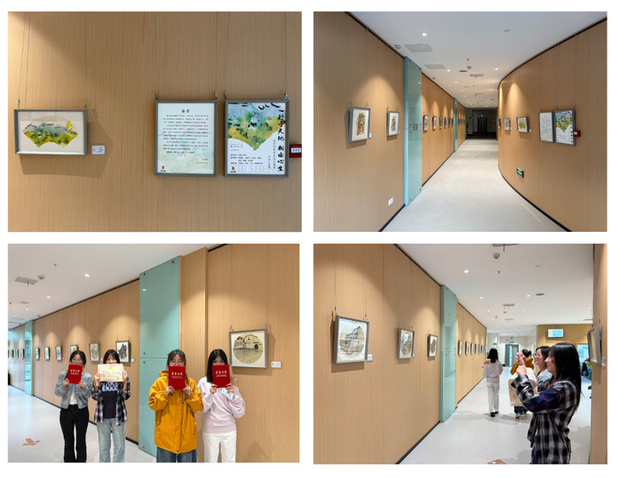 展览现场,2024级学生的采风作品风格迥异、创意迸发。部分作品以细腻笔触勾勒乡土建筑的人文温度,让老房瓦檐、木门雕纹间的岁月感跃然纸上;部分作品以大胆浓烈的色彩诠释自然景观的蓬勃活力;还有作品借助专业技术,实现传统纹样、民俗元素的现代表达,展现出设计学科的跨界融合魅力……每一件作品都凝聚着学生在采风过程中的细致观察与深度思考,也传递出他们对 “设计源于生活” 理念的独特理解与创新探索。不少观展师生表示,透过这些作品,既能直观感受到自然之美与生活之趣,更能清晰看到2024级学生扎实的专业基础功底与鲜明的个人创作个性。