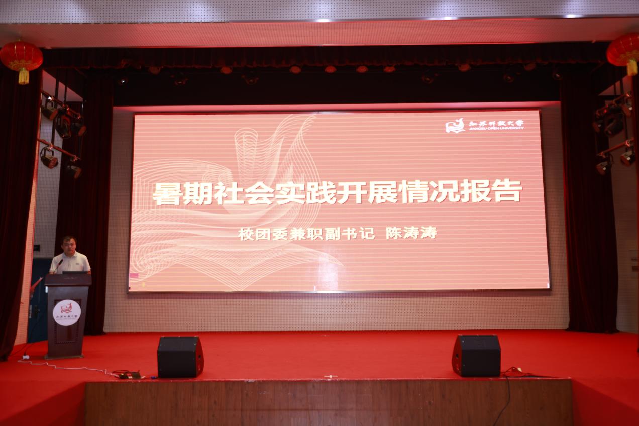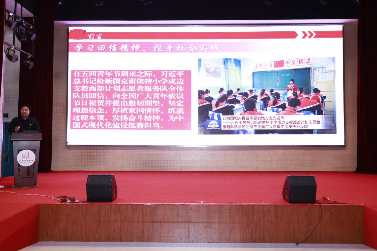 校团委兼职副书记陈涛涛为师生介绍了2025年暑期社会实践总体情况。我校“骑手+”校级调研实践团通过视频展示了实践成果。