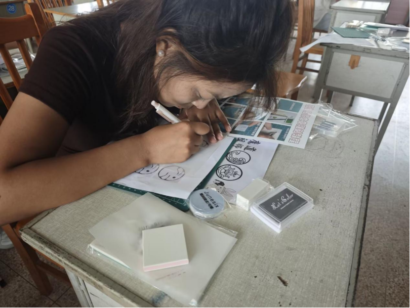 橡皮章雕刻活动里,同学们拿起刻刀,把对祖国的祝福、传统的纹样刻在橡皮上。每一刀都得仔细,刻出来的印章盖在卡片上,既好看又有意义。大家不光学会了简单的雕刻技巧,更在动手过程中感受到传统文化的魅力,慢慢明白传承文化不是一句空话,而是能通过这些小事一点点做到的。