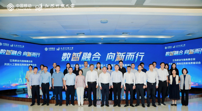 为搭建政企学研多方协同对话桥梁、推动人工智能技术与产业场景深度融合,10月16日,由江苏开放大学联合中国移动通信集团江苏有限公司、江苏省独角兽瞪羚企业联盟、江苏省数字经济联合会、江苏创新生态研究院共同举办的“数智融合向新而行——共创人工智能应用新场景座谈会”在宁顺利召开。省发改委、省科技厅、省工信厅、省数据局、省通信管理局、省工商联、南京大学以及13家独角兽企业、中移资本的代表共计50余人参会。