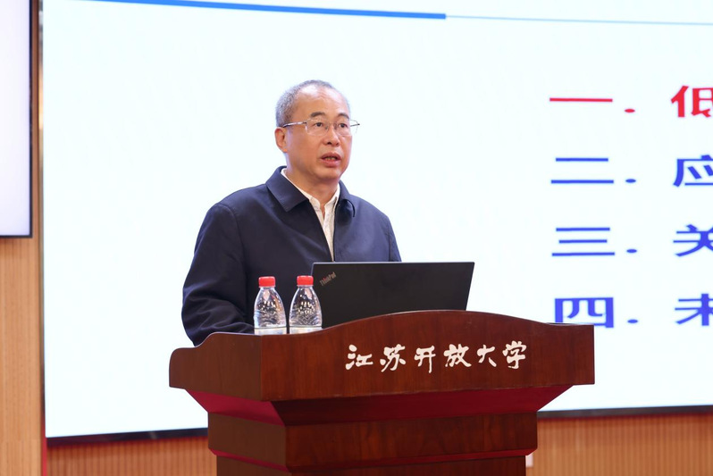 10月15日上午,由国家人力资源和社会保障部主办,江苏开放大学承办的2025年专业技术人才知识更新工程国家级高级研修项目——“人工智能大模型赋能城市更新数智融合发展”高级研修班开班仪式暨院士报告会在我校定淮门校区举行。江苏开放大学党委常委、副校长刘贵友,北京航空航天大学教授、博士生导师、中国工程院院士向锦武,省人力资源和社会保障厅人才开发处处长周军以及相关学会协会负责人等出席活动。来自全国各地的高校、央企国企、行业协会和民营企业的53名学员和学校教师代表近200人参加了活动。开班仪式暨院士报告会由学校省级专业技术人才继续教育基地执行主任徐德主持。