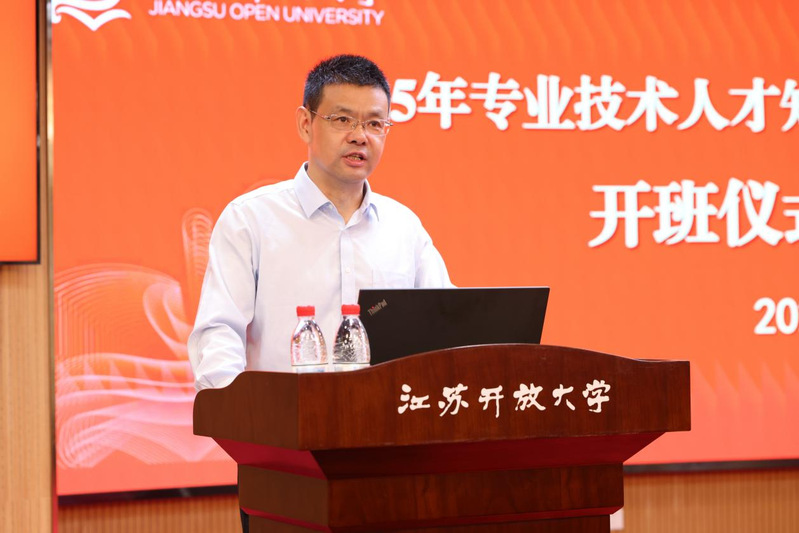 江苏省人力资源和社会保障厅人才开发处处长周军受朱从明厅长委托,向本次高级研修班开班表示祝贺。他指出,江苏作为经济与科教大省,正处于推动高质量发展走在前列的关键时期,比任何时候都更加迫切需要一支规模宏大、结构合理、素质优良的专业技术人才队伍。举办此次研修班,正是我们精准对接国家战略需求、服务区域经济社会发展、强化现代化建设人才支撑的一项具体举措和有力实践。