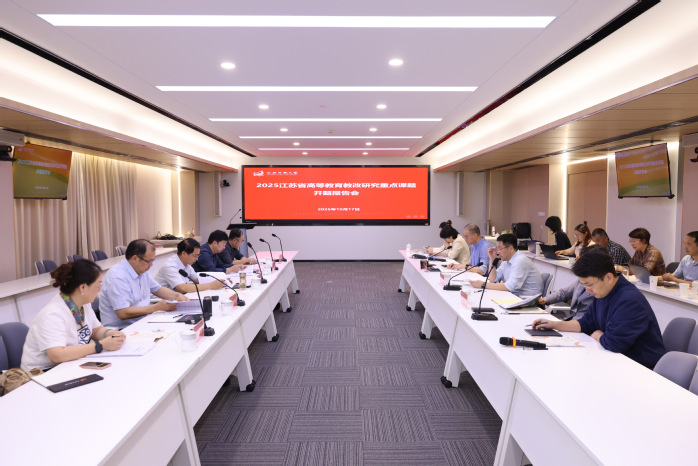 10月17日下午,我校2025年江苏省高等教育教改研究重点课题开题报告会在定淮门校区8楼会议室举行。会议邀请南京科技职业学院党委书记张小军研究员、南京信息职业技术学院院长田敏教授、南京信息工程大学高等教育研究所所长吴立保研究员、常州工学院教学质量管理处处长王瑛教授、南京师范大学教育科学学院叶晓玲教授担任论证专家;校党委常委、副校长耿焕同出席并讲话;教务处处长朱祎主持会议,重点课题主持人及部分成员参加开题报告会。