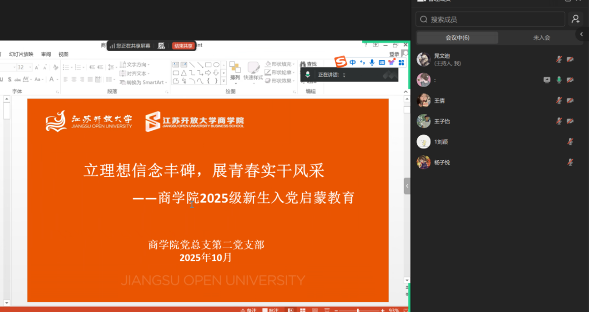 为进一步发挥青年学生党员朋辈引领作用,确保新生入党启蒙教育有广度、有温度、有深度,10月17日18:00,第二党支部书记任静静组织全体学生党员开展培训指导,详细介绍入党的流程和具体要求,要求全体学生党员要结合自身鲜活的成长进步经历,点燃新生奋进逐梦的热情,为后续学生党员进班开展全员入党启蒙教育奠定坚实基础。