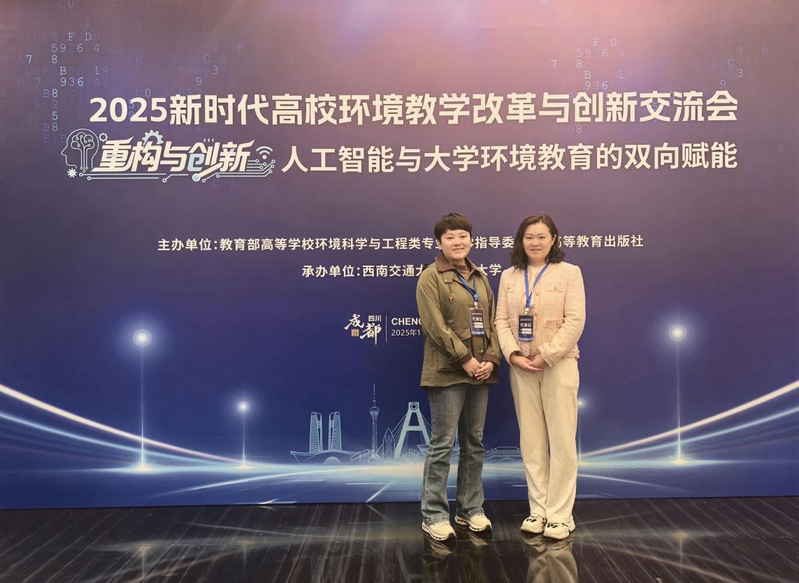 11月14日至16日,由教育部高等学校环境科学与工程类专业教学指导委员会、高等教育出版社联合主办,西南交通大学与四川大学联合承办的“2025新时代高校环境教学改革与创新交流会”在成都举行。会议聚焦“重构与创新:人工智能与大学环境教育的双向赋能”,围绕“环境类专业建设与拔尖创新人才自主培养”“人工智能与课程教材深度融合的教学改革实践”“战略性新兴领域‘十四五’高等教育教材体系建设”等专题,组织了200多所高校教师进行深入交流。环境生态学院魏翠兰老师和陈婉老师赴成都参加会议,并重点围绕环境科学与工程类专业课程教学改革与创新等内容进行了交流学习。