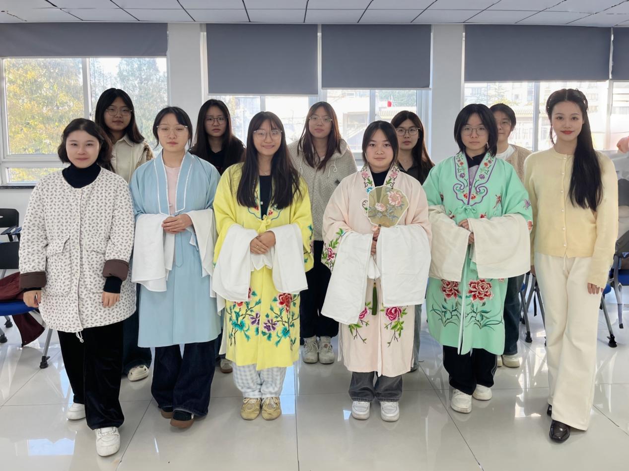 林籽辰老师以昆曲“唱念做打”基本程式为核心训练内容,为学生搭建起接触昆曲艺术核心的桥梁。课程中,林老师结合昆曲艺术的传承脉络与表演特性,将“唱”的水磨调韵律、“念”的吐字归音、“做”的身段程式、“打”的功法技巧拆解细化,通过逐字逐句的唱腔打磨、一招一式的身段纠正,让学生扎实掌握具体表演技能。通过系统训练,学生不仅提升了昆曲表演能力,更增强了对这一“人类非物质文化遗产代表作”的文化认同,为其活态传承与创新发展注入了青年力量。