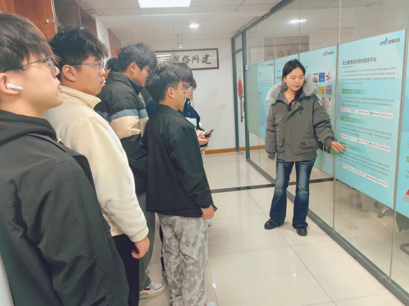 为积极响应国家关于深化产教融合、促进教育链与产业链有机衔接的政策导向,进一步增强高职院校学生对计算机网络技术领域的认知与兴趣,2025年11月17日,信息工程学院邱雨楠老师带领2025级计算机网络技术专业的学生们前往南京建策科技股份有限公司进行实地参观学习。此次活动旨在帮助学生建立专业认知,了解计算机网络技术在各个领域的应用,明确专业学习的目标和方向,熟悉计算机网络技术专业的职业岗位和工作内容,为未来的职业规划提供参考。