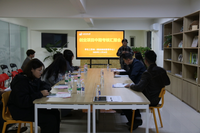 为检验入驻项目运营成效,提升创业园孵化质量,11月24日晚,我校在定淮门东校区一站式学生事务大厅召开2025年创业项目中期考评汇报会。南京林业大学白马校区学工部副部长、校区团委书记肖肖、副教授马欢欢,部分项目指导教师及8支入驻团队共20余人参会。会议由就业创业指导中心宋智华老师主持。