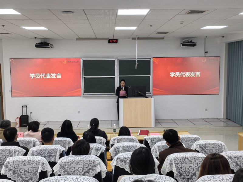 信息工程学院 2023 计算机网络技术班张雨婷作为学员代表发言。她以《以初心为炬,燃青春之光》为题,分享了对入党初心的深刻感悟,引用习近平总书记对青年的殷切寄语,表达了新时代青年积极向党组织靠拢的坚定决心。她表示,全体学员将珍惜此次培训机会,在理论学习中锚定信仰方向,在实干担当中锤炼过硬本领,在接续奋斗中传承红色基因,把个人理想追求融入党和国家事业,以青春之名赴时代之约。
