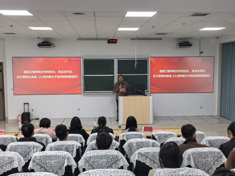 2025 年 11 月 25 日,信息工程学院分党校 2025 年第二期入党积极分子培训班开学典礼在应天校区教学楼 203 室隆重举行。校党校副校长、学工处处长刘慧英,信息工程学院分党校校长、党总支书记王小军,建筑工程学院党总支书记袁桂霞,环境生态学院党总支副书记杨丹,艺术学院团总支书记张锐出席典礼,应天校区全体入党积极分子参加仪式。