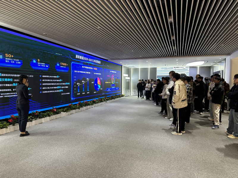 在润和软件企业联络人李永玲的引导下,同学们首先参观了润和创智中心展厅。展厅内,一系列智能终端、创新解决方案与行业应用案例,生动地展示了万物互联时代的智慧生活图景,让同学们对物联网技术的落地应用有了最为直观和震撼的初体验。