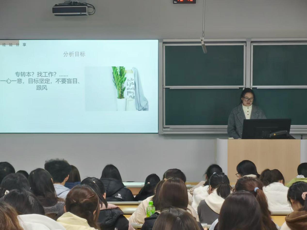 为帮助同学们明晰专转本备考方向、破解升学困惑,搭建校友与在校生交流桥梁,11月27日18:30,商学院在东校区教学楼1-1阶梯教室组织开展“优秀校友说”之专转本经验分享会。本次活动邀请到三位优秀校友返校传经送宝,商学院辅导员左慧宇主持活动,学院百余名同学参加。