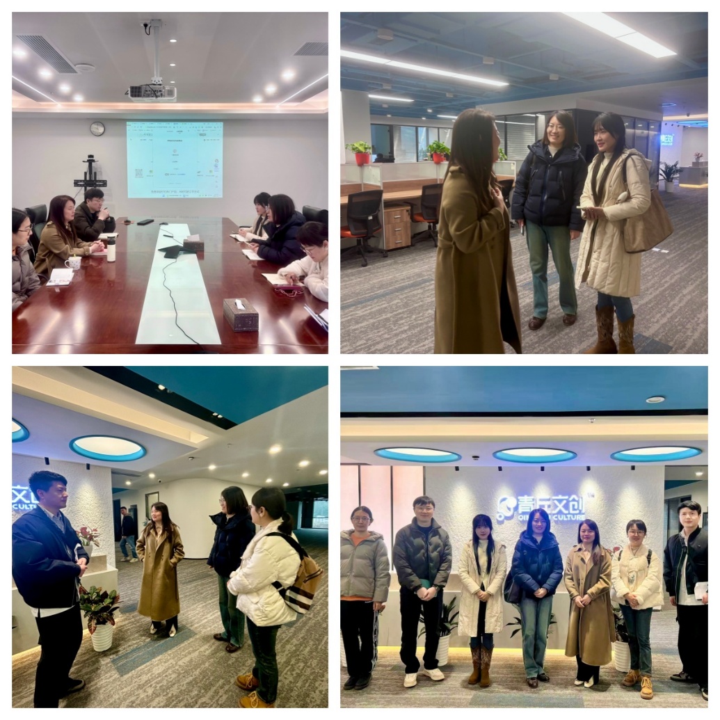 为深化产教融合、拓宽毕业生就业实习渠道,近日,设计学院党总支副书记、副院长蒋丽丽,院长助理、数字设计系主任李睿文,视觉设计系教师、毕业班班主任刘祖宏,团总支书记、毕业班辅导员陆静一行赴南京青丘文化创意发展有限公司开展访企拓岗交流。公司负责人吴翠青及业务骨干热情接待,双方围绕校企合作、人才培养等事宜深入洽谈,达成合作共识。
