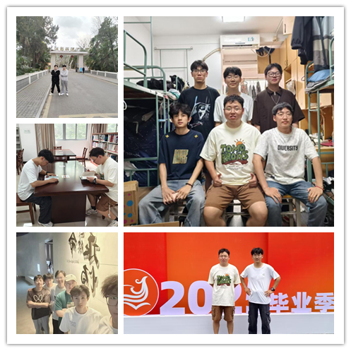 千磨万击还坚劲,任尔东西南北风。2栋207室是环境艺术设计专业宿舍。蒋璟、英梦鑫、张冠毅和王嘉楠等四人携手走进南京审计大学金审学院,邓硕则奔赴南京师范大学中北学院。自大一伊始,207寝室便以“2022届环艺学习标杆”作为自我激励的目标。从最初在学业领域中暗暗较劲、你追我赶,到毕业创作答辩阶段时,成员们主动分享设计思路,共同打磨答辩细节,用默契的互帮互助为大学三年的学习生涯画上了圆满句号。王嘉楠作为团队中最早踏上备考征程的“领路人”,无数个深夜里,他伏在书桌前专注学习的身影,如同一盏明灯,悄然照亮了宿舍其他成员的奋斗之路,带动全员陆续踏上备考征程。那些熬过的漫漫长夜、刷过的厚厚习题、讨论时迸发的思维火花,此刻都化作了查分时刻“春风得意马蹄疾” 的真切喜悦,三年来共同挥洒的汗水在梦想成真的瞬间绽放出最耀眼的光芒。"专转本没有想象中难,只要保持好的学习习惯",蒋璟说。他们以宿舍为阵地,将竞争化为动力,把互助熔铸成铠甲,在求知路上书写下 “集体上岸” 的亮眼答卷,让青春在并肩奋斗中绽放出最耀眼的光芒。