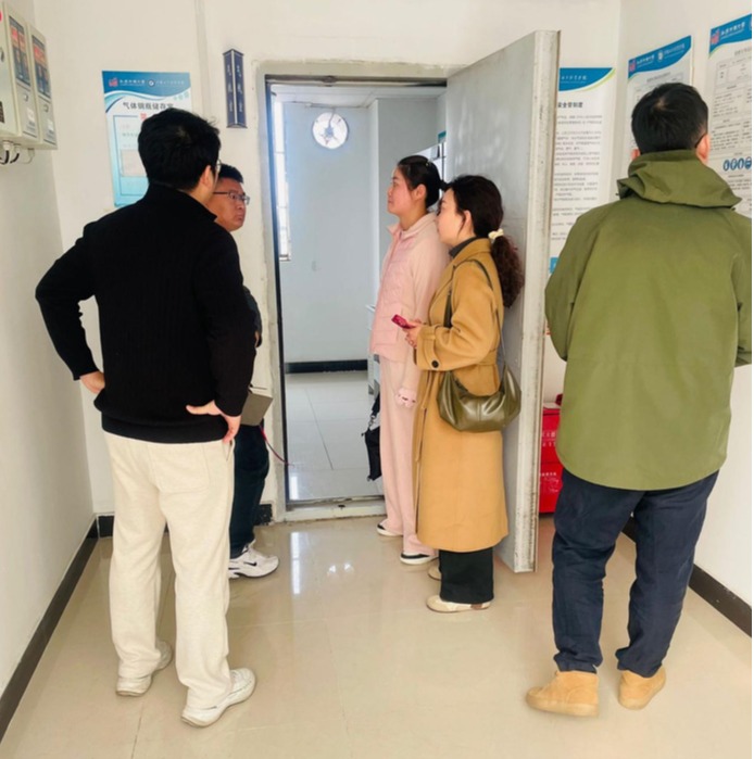在现场检查环节,专家团队深入学院气瓶室,对气体管路系统进行了细致排查,逐一核查设备运行状态、安全防护措施落实情况。钱辉雯经理对学院目前气瓶间和气路系统的总体设计规范性给予了充分肯定,认为学院在气体安全管理方面基础扎实、措施到位,有效保障了实验室日常运行安全。同时,专家团队也精准指出了我院在实验室气体管路系统中存在的问题,并结合学院实验室实际使用需求,提出了合理化整改建议,为学院后续安全隐患整改指明了方向。