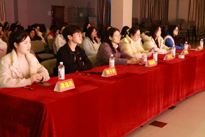 为丰富校园文化生活,发掘和培养兼具语言表达能力、临场应变能力与商务素养的主持人才,展现商院学子的青春风采与专业气质,2026年3月12日18:30,商学院“商才主持 言耀未来”主持人大赛在古平岗校区食堂三楼大学生活动中心精彩开赛。辅导员赵嘉琦及学院学生干部代表担任本次比赛评委,商学院全体学生共同见证这场语言与风采的视听盛宴。