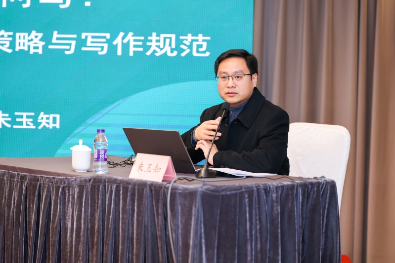 专家讲座环节,南京工业大学朱玉知教授以“题从何来,文如何写”为主题作专题报告。他结合多年教学研究和论文指导经验,从选题立意、问题凝练、结构搭建、论证展开、语言表达及格式规范等方面进行了细致讲解。他指出,好的论文始于好的选题,选题要立足专业、着眼现实、聚焦问题,做到“小切口、深挖掘、真研究”;写作要注重逻辑严密、层次清晰、论据充分,避免空泛化、碎片化和形式化倾向。报告中,他还结合具体案例对常见问题进行分析与纠正,为与会教师提供了兼具理论高度与实践价值的指导。