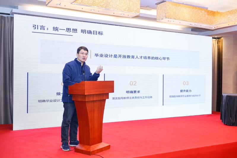 吴红梅在致辞中代表学院向长期以来关心、支持公共管理学院人才培养工作的各位老师表示衷心感谢。她指出,毕业论文是检验学生综合运用专业知识分析问题、解决问题能力的重要环节,也是衡量教育教学质量的重要标尺。面对开放教育“提质”要求,她强调,一要提高政治站位,强化责任担当;二要坚持标准引领,严把质量关口;三要深化教学改革,创新指导模式;四要加强协同配合,凝聚工作合力。希望老师们严把论文意识形态关,守牢廉洁自律底线,以优良的师德师风塑造开放大学教师良好形象,共同推动开放教育事业高质量发展。