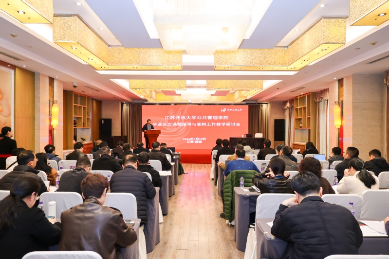 为进一步提升毕业论文指导与管理水平,夯实人才培养质量根基,3月20日,公共管理学院在南京召开2026年度毕业论文课程指导与答辩工作教学研讨会。公共管理学院党总支书记吴红梅、教务处副处长徐永兵以及来自全省各市、县开放大学以及公共管理学院的100余名论文课程负责人、论文指导教师、答辩教师、答辩秘书等参加会议,研讨会由公共管理学院副院长骆正言主持。