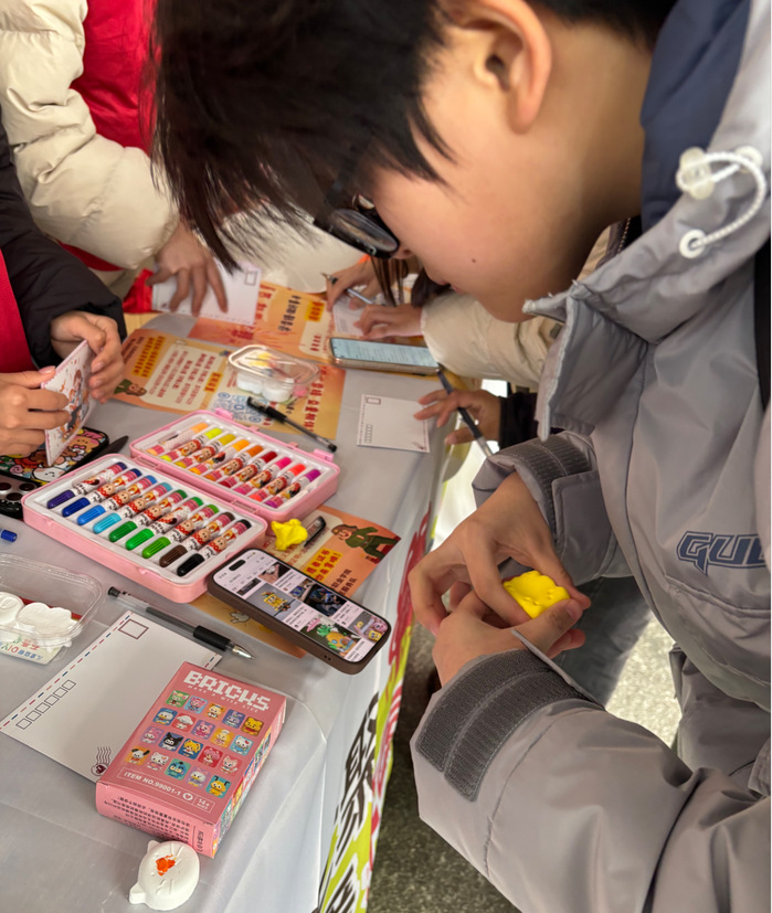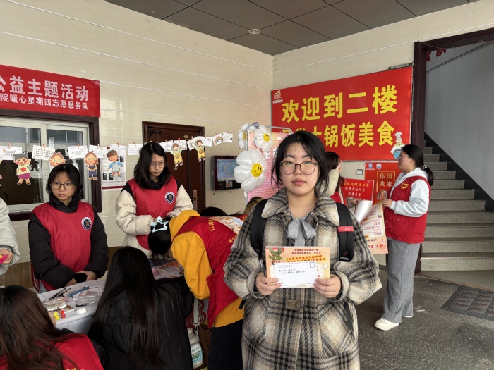 线下活动在古平岗校区校园核心区域设专属摊位,为期3天的沉浸式宣传互动吸引众多学子参与。专属摊位现场设置爱心寄语明信片、益童爱心树、公益成果展示区、爱心手作赠送等互动环节,同学们书写暖心祝福、按下爱心手印、制作书签折纸,用真挚行动向山区儿童传递关爱;公益成果展示区集中呈现过往帮扶照片、留守儿童感谢信及爱心物资发放实况,直观展现公益力量,激发更多人参与热情。