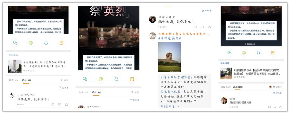 4月3日-5日,各团支部号召团员青年参加了共青团中央“清明祭英烈”、中国青年网“为革命先烈鲜花留言”“每一个你,我们都记得”等线上祭奠活动,进行网上献花、发表祭奠感言、线上参观烈士纪念馆等,向英烈和逝去的同胞送上最深的思念;通过中华英烈网学习革命先烈的感人事迹,营造出崇尚英烈、学习英烈的浓厚氛围。