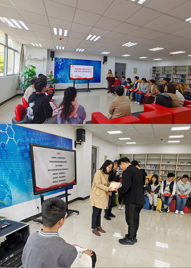 为深入贯彻落实习近平总书记在党史学习教育动员大会上的重要讲话精神,迎接中国共产党成立100周年,用党的奋斗历程和伟大成就凝心聚力。马克思主义学院组建“青年学生党史研学小组”,以推动党史学习教育走深、走实、走入人心。4月9日中午,“青年学生党史研学小组”成立仪式在应天校区正式举行。马克思主义学院副院长张露,陆洋、汪莉丽、董迅石老师和党史研学小组成员出席了本次活动。活动由王笑笑老师主持。