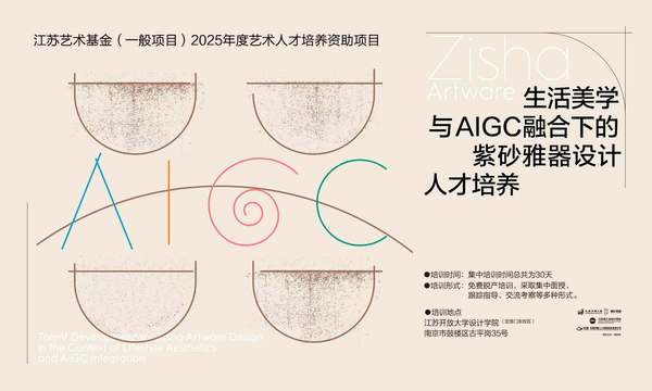 近日,江苏艺术基金管理中心正式公布2025年度立项名单。我校设计学院申报的“生活美学与AIGC融合下的紫砂雅器设计人才培养”项目,成功入选2025年度江苏艺术基金艺术人才培养项目。江苏艺术基金是经省人民政府批准设立的公益性基金,旨在扶持优秀艺术创作、培养杰出艺术人才、推动江苏文化艺术事业高质量发展。这次基金立项是设计学院继2023年度江苏艺术基金“江苏省舞台美术呈现高级研修” 项目立项后的再度立项。“生活美学与AIGC融合下的紫砂雅器设计人才培养”项目由江苏开放大学主办,联合江苏省工业设计学会陶瓷设计专委会、无锡供春人工智能科技有限公司共同构建“教育—行业—科技”三环协同育人机制,整合教育资源、行业标准、AIGC技术三方优势,推动紫砂行业数智化转型。项目聚焦“美学素养提升+AIGC技术赋能+传统工艺”三核驱动,通过理论阐释、实践创作与实地调研相结合的教学模式,涵盖集中授课、案例分析、集体座谈、分组调研、团队汇报、操作示范、个体交流及作品展示等多元形式,系统培养兼具文化阐释力、技术驾驭力与市场洞察力的复合型拔尖人才。此次培训旨在以AIGC技术激活紫砂文化基因,构建数字化协同设计—手工二次