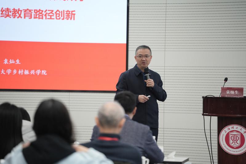 为深入贯彻落实《教育强国建设规划纲要(2024—2035年)》,由上海市教委指导、上海市高校继续教育指导服务中心和上海理工大学继续教育学院承办的2025年上海高校继续教育高质量发展专题培训(第二期)于11月12日至13日举办。来自各高校的60余名非学历教育归口管理部门负责人与非学历教育办学部门负责人齐聚一堂,共同探索新时代高校非学历教育高质量发展新路径。江苏开放大学乡村振兴学院院长袁灿生教授应邀为学员授课,主题为“乡村人才继续教育路径创新”。他基于数智化大背景和农业社会化服务视角,分析了乡村人才培养现状与面临挑战,提出了构建线上线下相结合、学历继续教育与非学历继续教育相融通“双线双学”乡村人才继续教育模式,打造“沉得下、留得住、能管用”人才培养与人才发展服务体系,逐步实现以乡村人才振兴带动乡村全面振兴的目标,推动农业农村新质生产力加快形成,促进现代农业发展、和美乡村建设和农民持续增收。袁灿生授课获得学员高度认可,课上听得入神,课后互动热烈,并与上海有关高校就共同发起长三角乡村振兴继续教育联合组织达成初步意向。本次培训聚焦体制机制优化、产教融合、乡村振兴、数智赋能、援外培训等关键议题,通