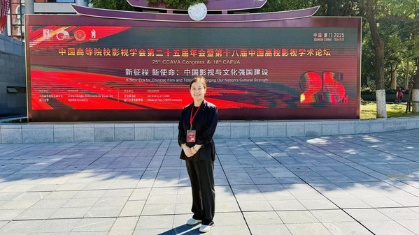 11月14日至16日,中国高等院校影视学会第二十五届年会暨第十八届中国高校影视学术论坛在厦门大学盛大开幕。来自北京大学、清华大学、复旦大学、上海交通大学、北京师范大学、中国传媒大学、北京电影学院、厦门大学、澳门科技大学、保加利亚国立艺术学院等知名高校的750余位专家学者云集,围绕“新征程 新使命:中国影视与文化强国建设”这一主题,深入探讨中国影视如何繁荣发展社会主义文化,扎实推进文化强国建设。由我校设计学院媒体设计系教师于丽金担任编剧和导演的剧情片《看见远方》,在中国高等院校影视学会2024-2025年度影视作品推优活动中,荣获年度优秀剧情作品(教师组),并成功入围第四届全国高等院校影视作品联合展映。中国高校影视学会自2025年6月25日启动“2025年度全国高校影视作品联合展映活动”以来,共收到作品1975部,竞争激烈。经多轮评审,最终仅有20部作品入围剧情单元(教师组)联合展映,《看见远方》位列其中。该影片是我校设计学院深化产学研融合、以企业需求为导向,探索横向科研新路径的重要成果。于丽金老师作为选派至仙微视觉科技(南京)有限公司的“科技副总”,主导企业品牌传播项目,全程负责影片从